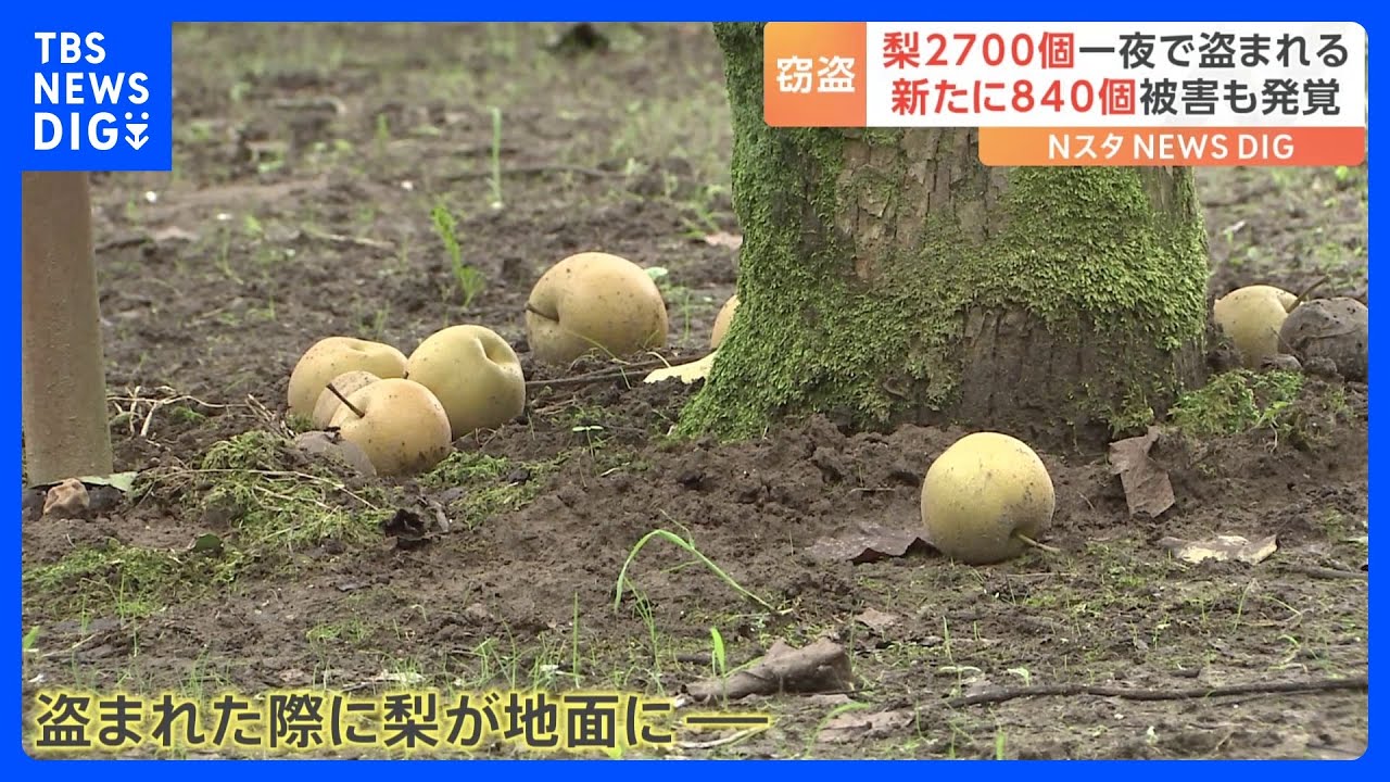 警察によりますと、農園に人がいなかった時間帯はおとといの午後5時ごろからきのう午前9時半ごろの間。収穫直前の梨が、一夜にして2700個あまり盗まれたことになります。