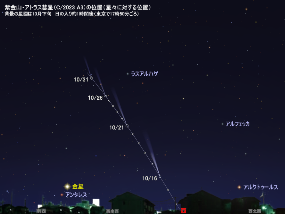 | 今治でも紫金山・アトラス彗星観測 今治在住カメラマンが撮影成功 …アトラス彗星(すいせい)が観測適期を迎え、10月16日には今治市内でも長く尾を引く姿が観測された。(今治経済新聞) 国立天文台によると、彗星は昨年1… (出典:) |